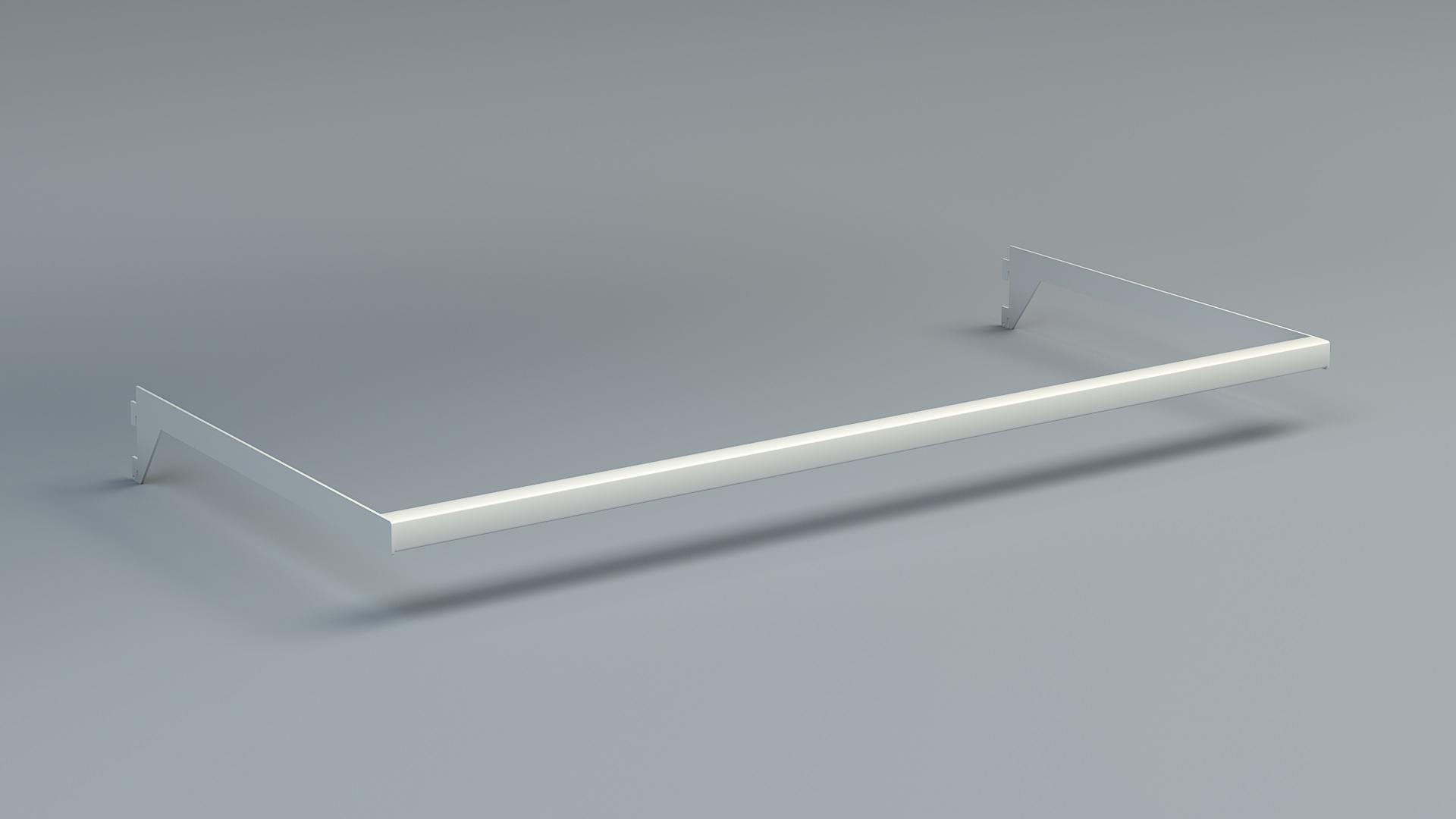 Każda nasza półka to dwuelementowy zestaw, samej półki właściwej oraz dopasowanej pod nią wspornika, w ten sposób zwiększamy nie tylko samą jej stabilność, ale przy równomiernym jej obciążeniu, również dopuszczalną masę. Półki wykonane są z identycznych materiałów jak górny wieniec regału, również malowana w całości proszkowo, elementy nie odbiegają wizualnie od reszty konstrukcji. Uchwyt wykonany z profilu 30 x 18 ze stali 2mm.