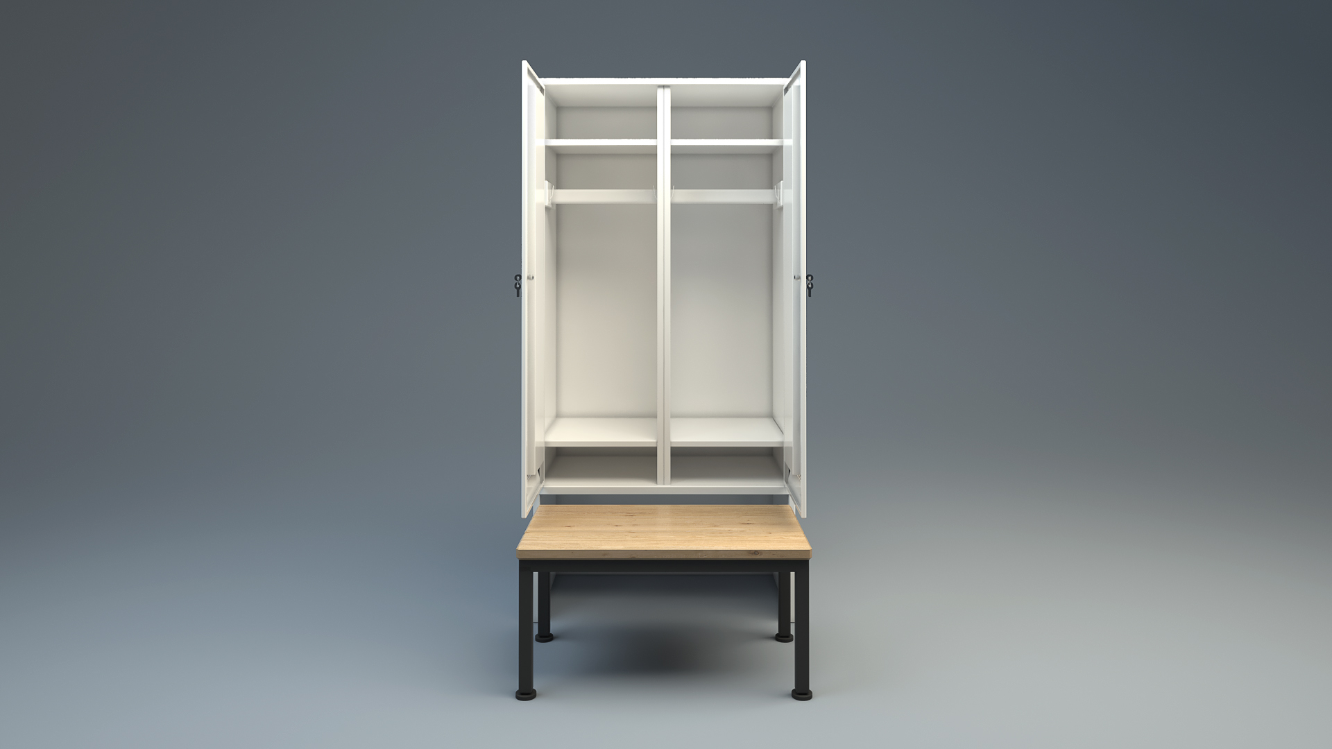 Stalowa, zamykana na klucz indywidualny, malowana proszkowo na wybrany kolor z palety RAL, zaprojektowana jako solidna szafa o uniwersalnym przeznaczeniu, jednak najlepiej sprawdzi się jako szafa dla pracownika, ucznia, w szatni pracowniczej, lub szkolnej. Wyposażona w wysuwną ławkę wolnostojącą, antypoślizgową, oraz indywidualny klucz.