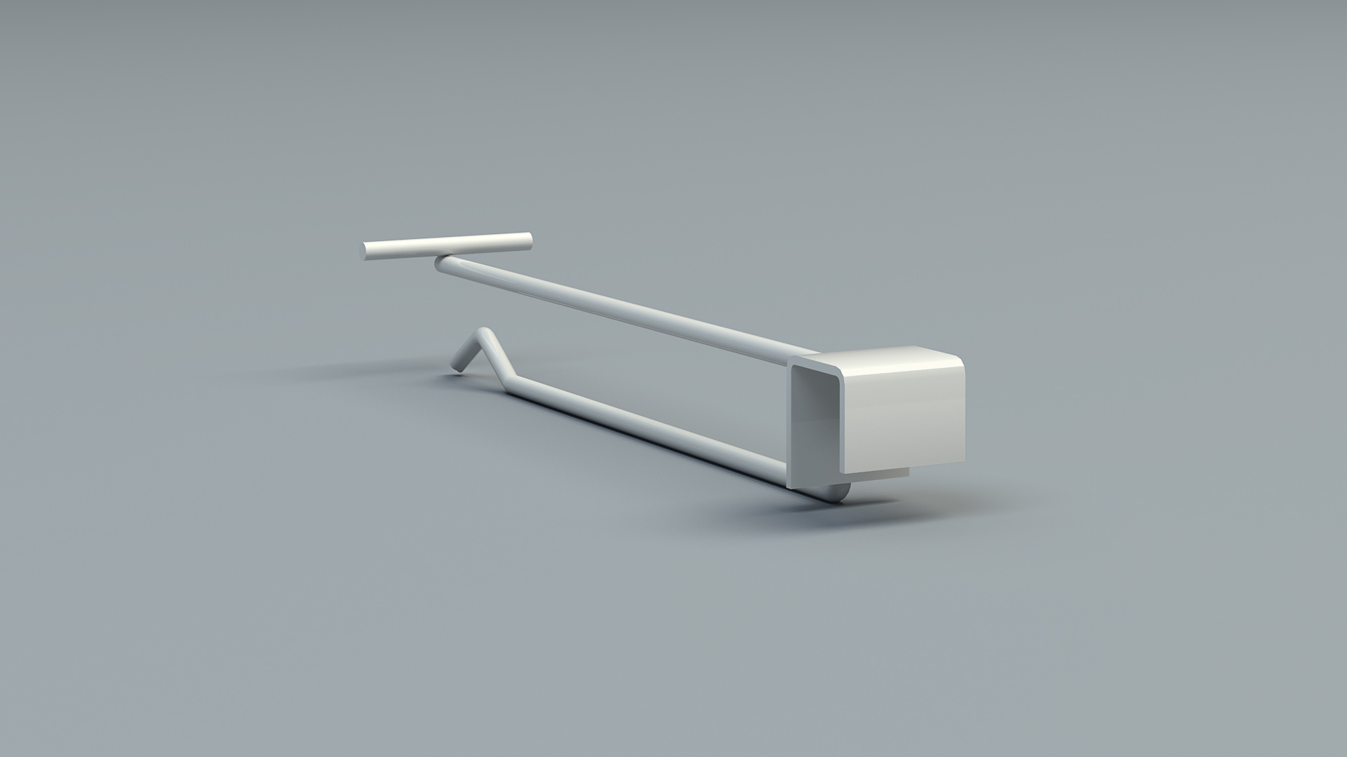 Typowe zakończenie zawieszki, przegięcie zapobiega ześlizgnięciu się towaru, a dodatkowy poprzeczny, element świetnie sprawdzi się pod etykietę na towar.